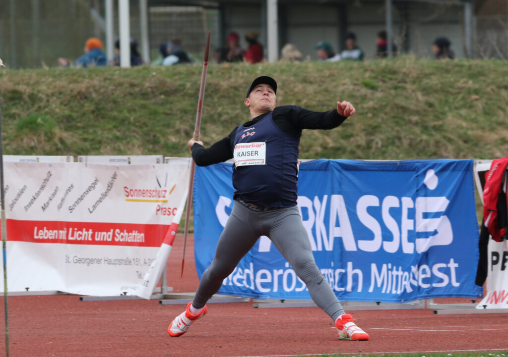 Im Speerwurf der Männer zeigte Markus Kaiser (KLC) einen starken Wettkampf und belegte mit 57,78 m den zweiten Platz. Auf den Sieg fehlten ihm nur wenige Zentimeter.